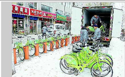 文/本報記者魏立波 攝/本報記者張輝 工作人員正在將各網(wǎng)點(diǎn)的自行車(chē)裝車(chē)入庫