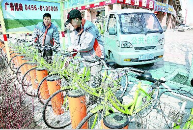 圖為黑河市區的管理人員將已檢修完畢的公共自行車(chē)運至網(wǎng)點(diǎn)。本報記者張輝攝