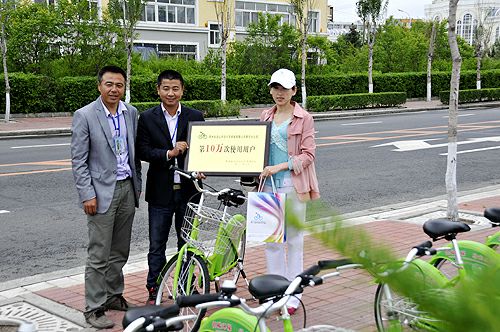 黑河市公共自行車(chē)項目自5月27日正式啟動(dòng)以來(lái),市民辦卡踴躍,辦卡量已超過(guò)6000張,使用用戶(hù)超過(guò)十萬(wàn)名,我們?yōu)榈?0萬(wàn)名公共自行車(chē)使用用戶(hù)頒發(fā)榮譽(yù)證書(shū),同時(shí)倡導大家綠色出行,低碳生活,多騎車(chē),少開(kāi)車(chē),愛(ài)護我們的綠色家園,同時(shí)也請廣大市民愛(ài)護公共自行車(chē),保護公共設施。