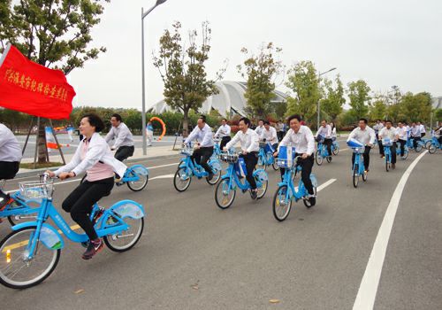 2006年,淮安舉辦了首屆全民健身運動(dòng)會(huì ),在全省引起較大反響。本次第二屆全民健身運動(dòng)會(huì )由市委市政府主辦,市體育局等7部門(mén)承辦,設4個(gè)部28項次比賽,將有一萬(wàn)多人參加此屆運動(dòng)會(huì )。為全方位體現“全運會(huì )”的特點(diǎn)及宗旨,運動(dòng)會(huì )采用了市民大力支持、廣泛參與的自行車(chē)環(huán)市行作為開(kāi)幕式方案,真正體現了“全民健身全民參與”和“全民健身你我同行”的主旨。開(kāi)幕式結束后,淮安市領(lǐng)導與萬(wàn)余名市民共同參加騎自行車(chē)環(huán)市行活動(dòng)。市領(lǐng)導們帶頭騎行在隊伍的最前面,全市近百個(gè)單位共萬(wàn)余人組成113個(gè)方隊,緊跟在市領(lǐng)導方隊后騎行。自行車(chē)隊伍所到之處一片歡騰,整齊干練的著(zhù)裝,精神抖擻的風(fēng)貌,意氣風(fēng)發(fā)的笑臉……祥和而熱鬧。而公共自行車(chē)的加入更是為活動(dòng)增添了一道亮麗的風(fēng)景線(xiàn),藍色的倩影在壯大的隊伍中顯得格外亮眼。引來(lái)了許多群眾駐足觀(guān)看,大家用掌聲和歡呼為隊伍加油助威。