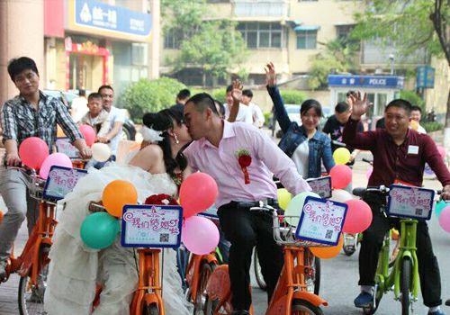 公共自行車(chē)婚車(chē)隊,濟寧還是頭一回