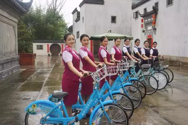本次活動(dòng)使用的公共自行車(chē)堪稱(chēng)活動(dòng)的一大亮點(diǎn),清新美觀(guān)的公共自行車(chē)、品貌端莊的高姐與古色古香的唐模鎮構成了一副唯美的畫(huà)卷。