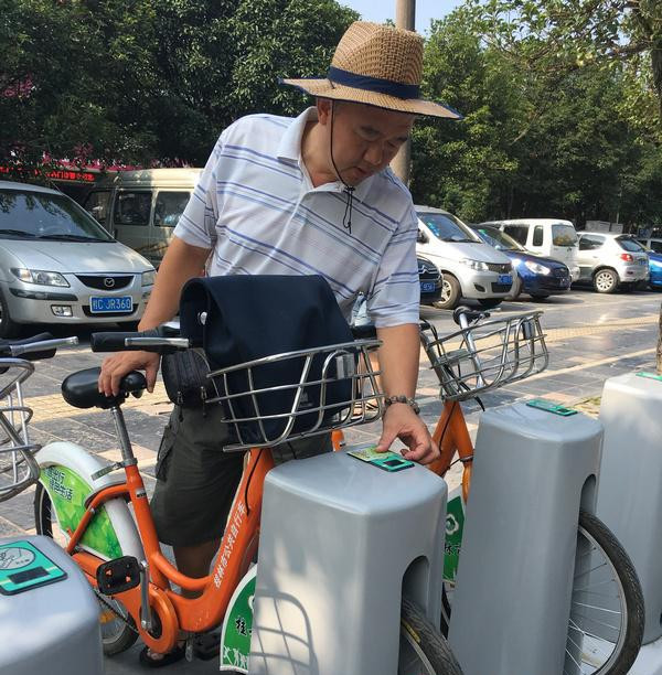 秦先生在“大家庭”行政部工作,每天都在市內大街小巷穿梭,查看門(mén)店經(jīng)營(yíng)情況,每天借車(chē)的頻率在5次以上。秦先生坦言自己家中有汽車(chē)、摩托車(chē)、電動(dòng)車(chē),但就是喜歡騎公共自行車(chē),因為“確實(shí)很方便”。