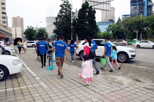 在父母的陪同下,孩子們化身“小綠”的守護神,其中最小的一位只有三歲,但是認真擦車(chē)的模樣,感染了很多路人,并紛紛為他們點(diǎn)贊。