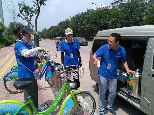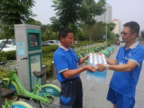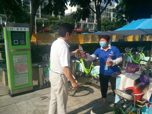 在7月27日下午最熱的時(shí)間段,漣水公共自行車(chē)管理中心負責人前往站點(diǎn),為那些堅守在一線(xiàn)的巡檢師傅們送上一片清涼。