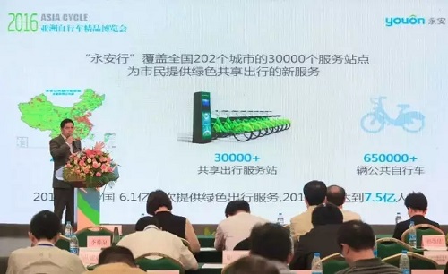 會(huì )上,常州永安公共自行車(chē)系統股份有限公司董事長(cháng)孫繼勝先生發(fā)表了關(guān)于“互聯(lián)網(wǎng)+”公共自行車(chē)的演講,表示隨著(zhù)公共自行車(chē)的普及,發(fā)展“綠色交通”的理念已在長(cháng)三角范圍內成為熱潮并形成一定的規模,公共自行車(chē)出行已成為人們短途出行的重要方式。