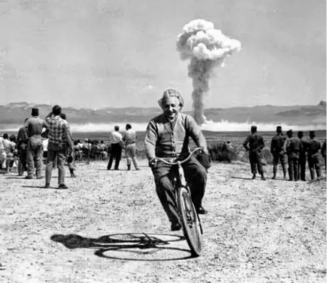 核彈試驗時(shí),愛(ài)因斯坦騎著(zhù)自行車(chē)。