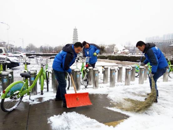 前幾日一場(chǎng)降雪席卷多個(gè)城市, 受降雪和冷空氣影響,部分公共自行車(chē)站點(diǎn)區域出現積雪和結冰現象,為保障市民正常騎行,永安員工立即啟動(dòng)了惡劣天氣-雪后運營(yíng)應急預案,提前制定劃分責任區域、調度人員班次、配備積雪清理工具,做好雪后應急預案實(shí)施準備工作。相關(guān)城市永安全員提前上崗,集中快速開(kāi)展站點(diǎn)自行車(chē)車(chē)座、車(chē)把和鎖車(chē)柱讀卡區“掃雪除冰”工作,并對部分雪后易滑站點(diǎn)周邊進(jìn)行了路面清理,為市民的平安順利出行保駕護航。