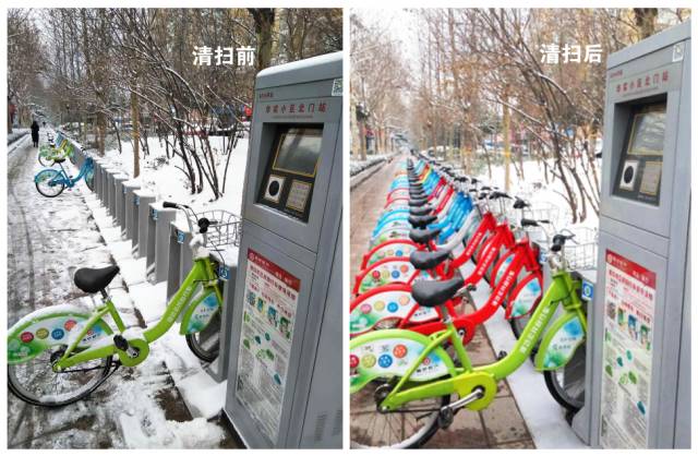 在白雪覆蓋的街頭可以看到,工作人員到達站點(diǎn)后快速清掃衛生,拿出抹布開(kāi)始擦拭站點(diǎn)設備、自行車(chē)以及清掃周邊道路的積雪;檢查服務(wù)點(diǎn)內的公共自行車(chē)是否有故障;幫市民解決各種問(wèn)題。盡管天氣寒冷、路面結冰、雙手凍僵,但工作人員依然客服困難穿梭在城區各個(gè)公共自行車(chē)站點(diǎn),用微笑和汗水溫暖著(zhù)過(guò)往行人心,為市民出行安全提供服務(wù)和保障。