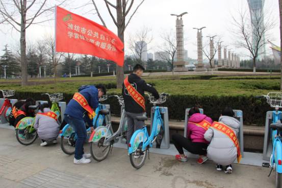 為深入開(kāi)展學(xué)雷鋒志愿服務(wù),弘揚“奉獻、友愛(ài)、互助、進(jìn)步”的志愿者精神,提升濰坊公共自行車(chē)服務(wù)品質(zhì),倡導低碳生活、綠色出行生活理念,濰坊公共自行車(chē)組織開(kāi)展了以“學(xué)習雷鋒精神,助力文明城市”為主題的志愿服務(wù)活動(dòng)。