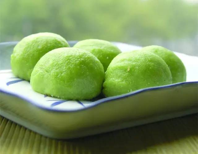 青團,又叫艾團,是一種用草頭汁做成的綠色糕團。青團碧青油綠,糯韌綿軟,甘甜細膩,清香爽口。青團是流行于江浙一帶的清明節節日食品,用青艾的汁與糯米粉一起調和,將豆沙餡、芝麻餡等餡料包入,做成一個(gè)個(gè)如小孩子拳頭大小的綠色的團子。家長(cháng)帶著(zhù)孩子出外踏青時(shí),還可以帶上一些青團作為小吃。