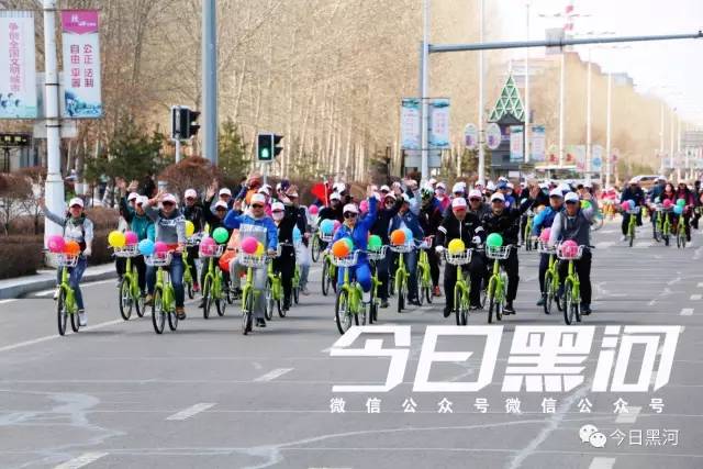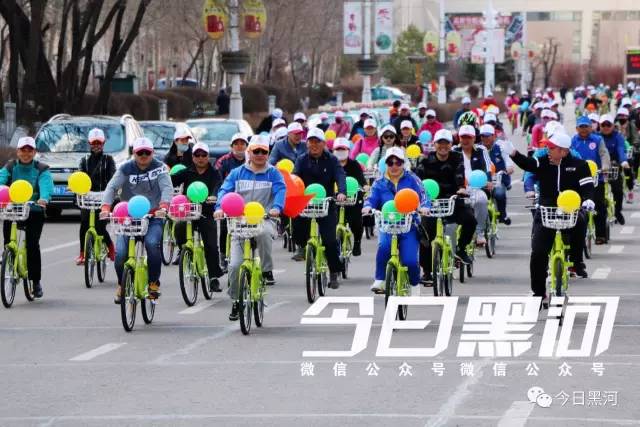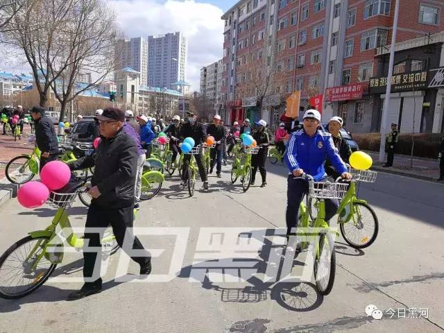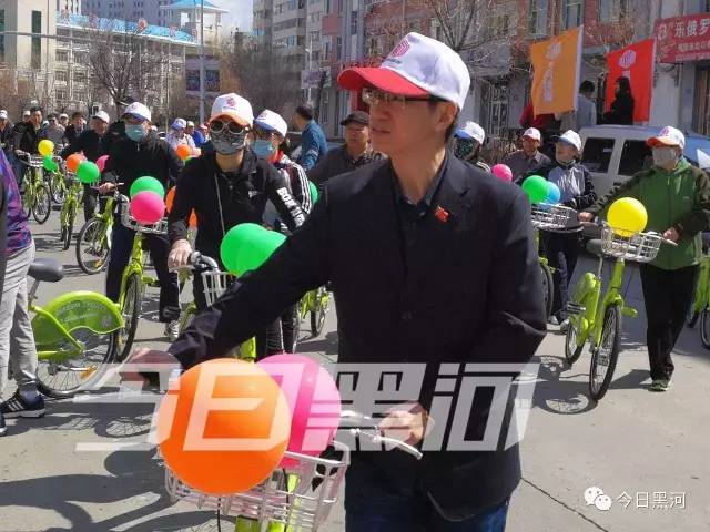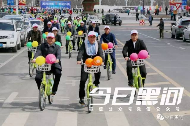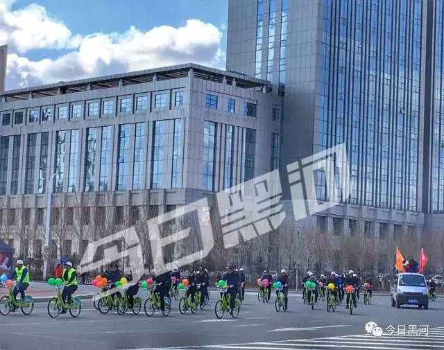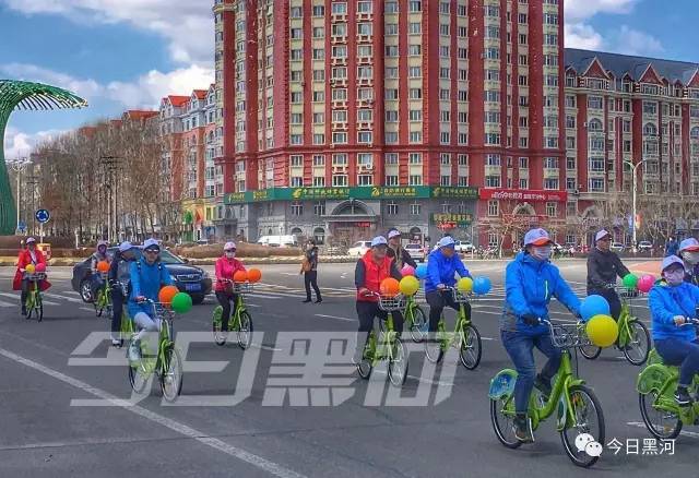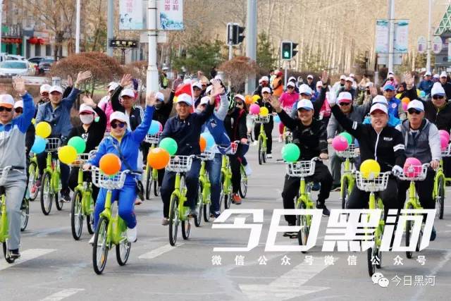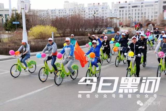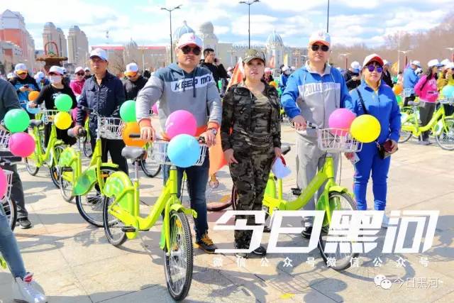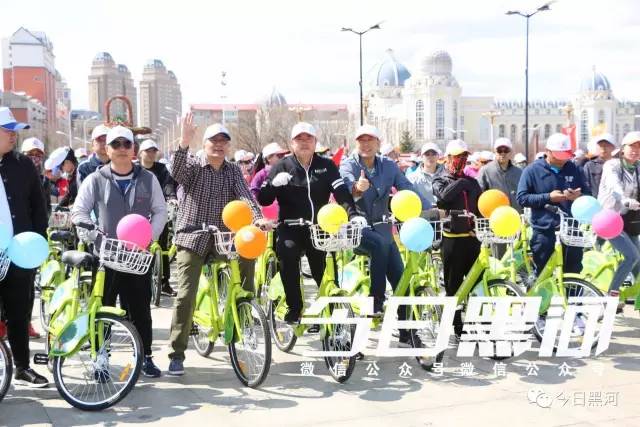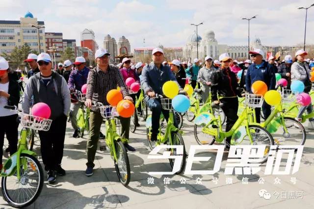 他們都是來(lái)參加“黑河封面”平臺開(kāi)通運行啟動(dòng)儀式的,他們將騎公共自行車(chē)繞行市區慶祝開(kāi)通。