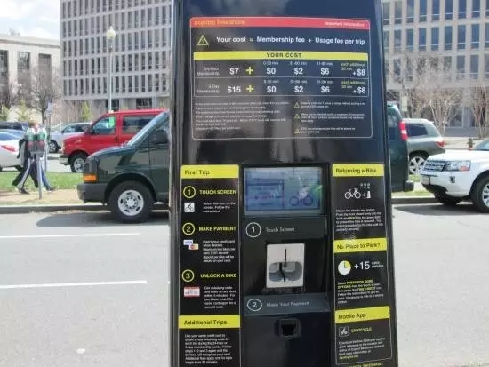 每個(gè)停車(chē)點(diǎn)都設有一個(gè)電子收銀機,插入信用卡,選好需要的套餐后,屏幕會(huì )顯示一組密碼,用戶(hù)需要立刻記住,選擇停車(chē)樁內任意一輛自行車(chē),輸入號碼后可取車(chē)。