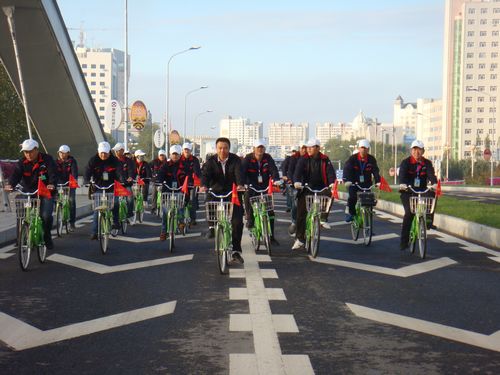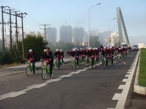 黑河市公共自行車(chē)全體員工為迎接第五屆“世界無(wú)車(chē)環(huán)保日”舉行騎行活動(dòng)。倡導市民“綠色出行,低碳生活,美化城市,改善交通”。