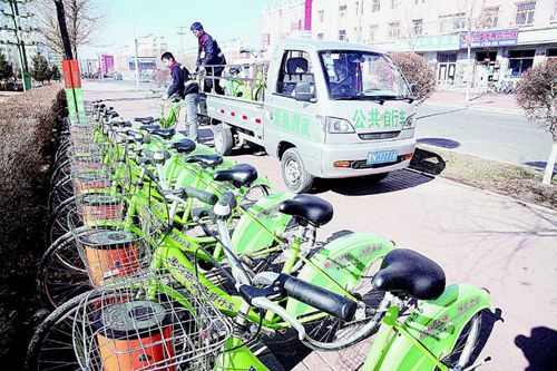 3月27日,黑河市公共自行車(chē)管理中心啟動(dòng)運營(yíng)系統,市區公共便民自行車(chē)正式恢復運營(yíng),市區各自行車(chē)辦卡點(diǎn)同時(shí)開(kāi)始辦理業(yè)務(wù)。據了解,由于今春天氣回暖早,冰雪融化快,已具備騎行條件,公共自行車(chē)恢復運營(yíng)比計劃提前10天。圖為工作人員將自行車(chē)運至網(wǎng)點(diǎn)。