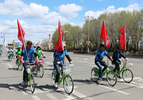 5月16日,由黑河市委統戰部、九三學(xué)社黑河市委聯(lián)合舉辦,黑龍江省騎游協(xié)會(huì )黑河分會(huì )承辦的“黑河中俄邊境騎游大會(huì )”暨全民健身自行車(chē)騎游活動(dòng)在黑河市區世紀廣場(chǎng)拉開(kāi)帷幕。本次活動(dòng)使用的公共自行車(chē)堪稱(chēng)活動(dòng)的一大亮點(diǎn),整齊劃一的公共自行車(chē)從馬路上飛馳而過(guò),在藍天白云的映襯下顯得格外靚麗,風(fēng)采無(wú)限。