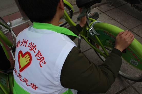 2016年3月13日的宿州,春意盎然,陽(yáng)光明媚,一大早,宿州學(xué)院的志愿者們便相約來(lái)到了宿州公共自行車(chē)站點(diǎn),給公共自行車(chē)進(jìn)行春天里的大掃除。