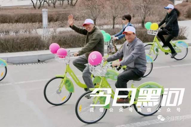 他們都是來(lái)參加“黑河封面”平臺開(kāi)通運行啟動(dòng)儀式的,他們將騎公共自行車(chē)繞行市區慶祝開(kāi)通。