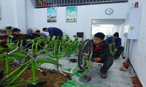 黑河公共自行車(chē)冬季停止運營(yíng)后,留下10名有維修自行車(chē)技術(shù)的員工,將2230輛自行車(chē)逐一進(jìn)行檢修保養,入庫存放,到明年春季根據天氣情況適時(shí)投入使用。下圖為維修人員正在認真地工作